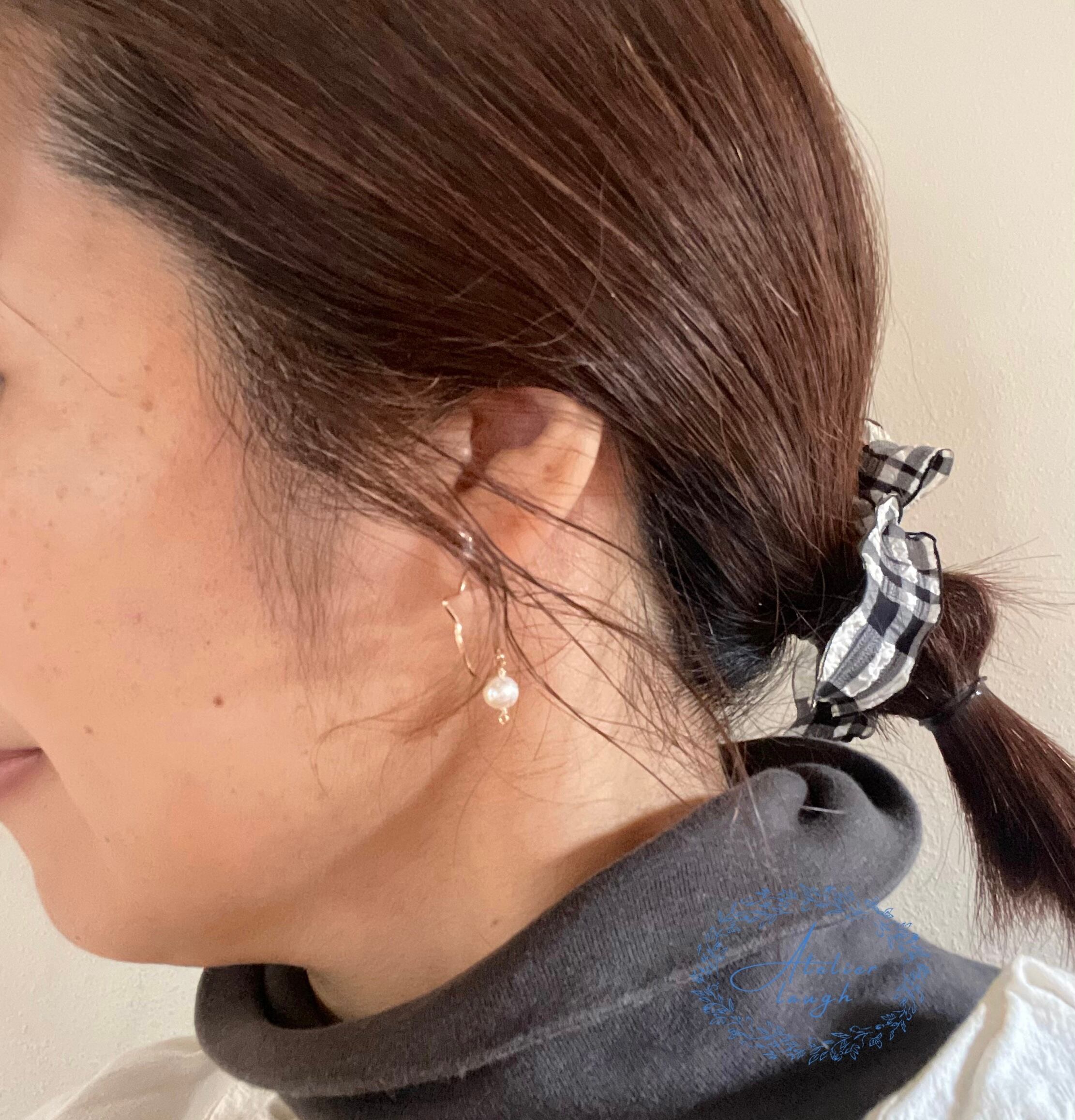優しい色味のゴールドが顔まわりをパッとオシャレにしてくれます。