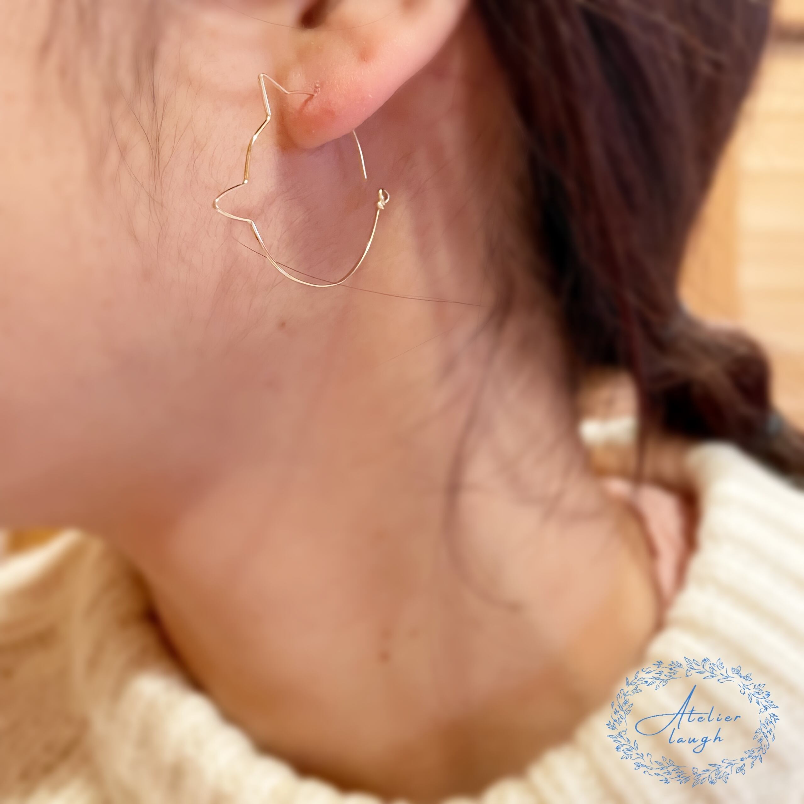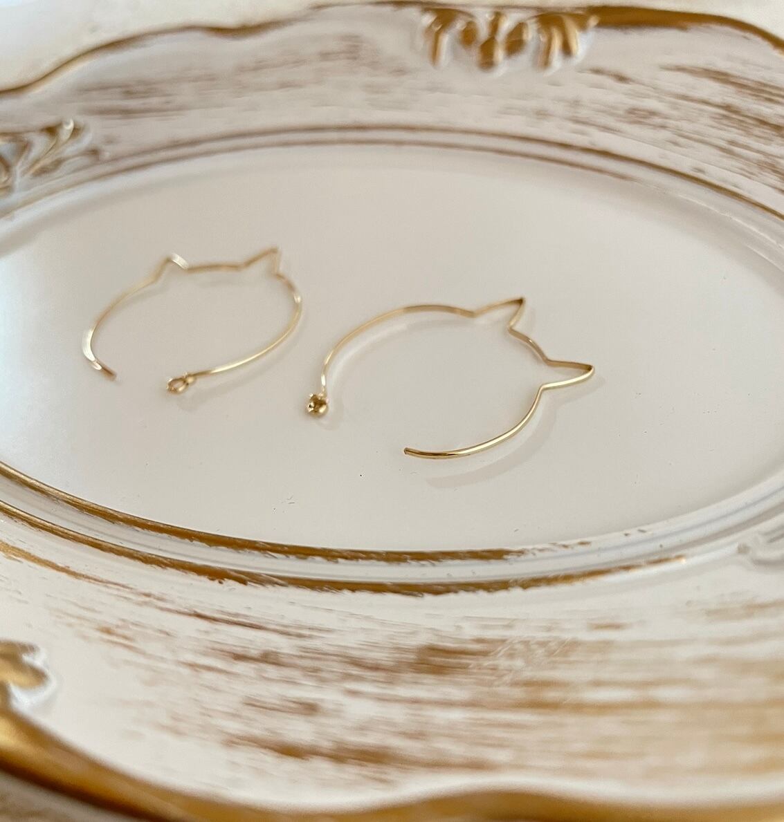 K14GFワイヤーで丁寧に仕上げた猫型のピアスです。
